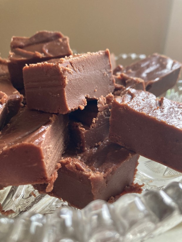 I find that fudge made with a confectioner’s or granulated sugar base (as opposed to marshmallow Fluff which I think is cheating) can be finicky and end up too hard or too soft or too grainy. I have a favorite fudge recipe I used to prepare for my grandfather, and while is was very tasty, I seldom hit the mark in terms of texture. This recipe hit the mark with setting up yet not being too hard to cut, but it still had a bit of the grainy texture. The taste is excellent, however, and I had no trouble eating my share before packing it up to take to relatives! The trick to graininess, I have learned, is in the way you stir or beat it (as Kay directs) as it is cooling. What I left to cool in the pan without beating was a perfect consistency, while what I cooled by beating was a tad grainy. I sometimes have to experiment when trying someone else’s recipes when that person is not around to help me.
