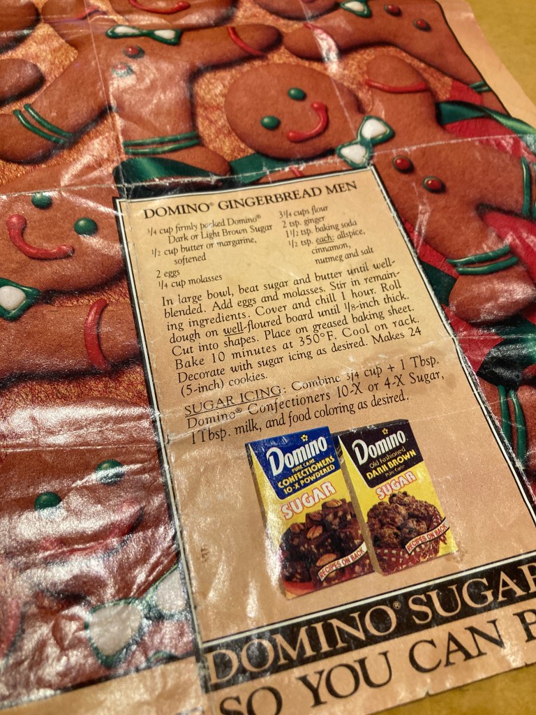 As with the Tollhouse® Chocolate Chip Cookie recipe, sometimes the most memorable recipes are not the unique ones. A recipe from the back of a bag or from a seasonal magazine can be turned into something magical because of the person making them or the holiday celebrated with family and friends. Such is this recipe taken from the December 1992 edition of Better Homes and Gardens. The recipe was in an advertisement for Domino® Sugar. I have used this recipe every Christmas since then. But I have made the dancing gingerbread cookies for longer than that. I remember making them with my mom when I was a teenager some 50 years ago. I assume we used some recipe she had handy. In the end, it doesn’t really matter what recipe you use. It’s how you decorate them and bring them to life that matters!